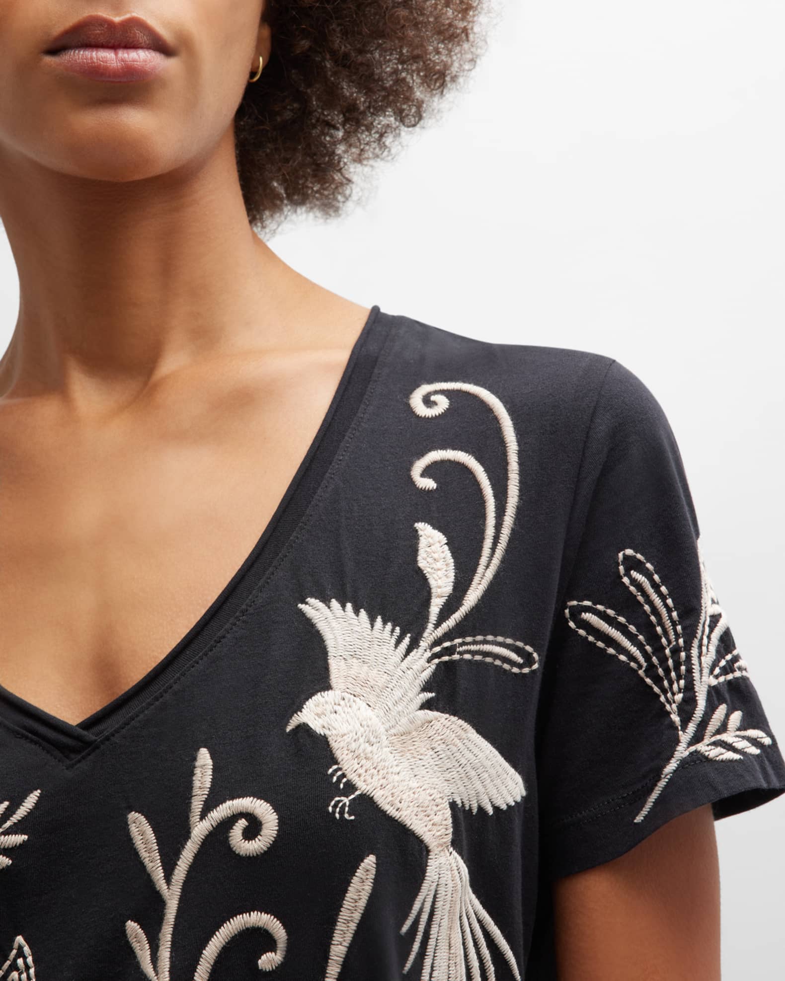 Johnny Was Frankie Embroidered V Neck Everyday Tee Neiman Marcus